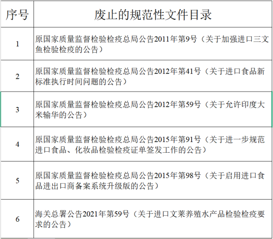根據(jù)工作需要,海關(guān)總署決定廢止部分進(jìn)口食品類規(guī)范性文件,具體文件目錄見(jiàn)附件。本公告自發(fā)布之日起生效。